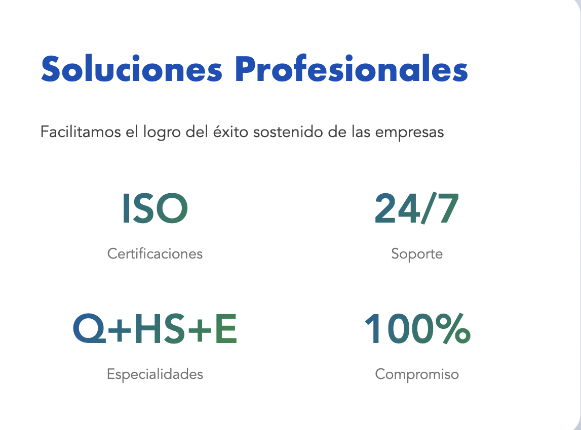 Somos un grupo de asesores especializados en brindar soluciones integrales en Calidad, Seguridad, Salud en el Trabajo y Medio Ambiente.